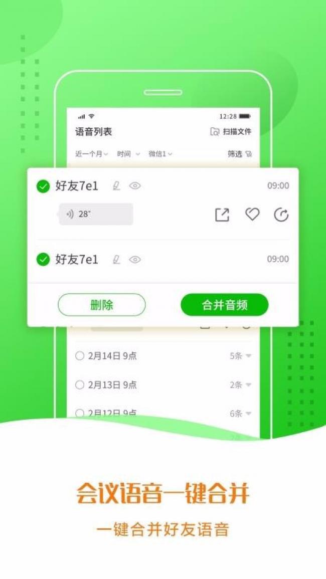 语音助手app下载是一款非常好用的语音助手软件,通过它可以将手机当中所有的语音包记录全部提取出来,而且还能对这些语音包进行管理和分类,将各种不同时间段的语音包进行区分,非常适合保险、电商以及微商等多种行业的从业人员,通过详细的分类用户能够更加快速的查找到自己想要的语音包,其中还有许多的语音包编辑功能,能够将各种语音包进行一键删除或者将各种音频进行合并编辑,将不同的语音包音频内容合并,生成一个完全新的语音内容,还可以在线编辑语音包的名称,在标签上添加好友的显示,更好的进行工作需求。喜欢的伙伴们快来下载试试吧。