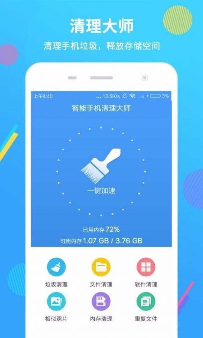 1、智能手机清理大师app下载是你的清理大师,清理手机垃圾,释放存储空间。