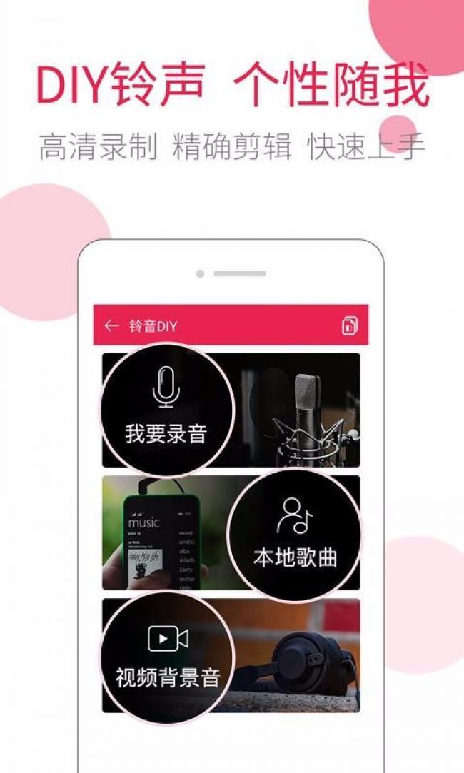2、DIY自制铃声,小白都能上手的简易铃声剪辑&录音功能,支持本地音乐导入,和保存视频背景音,你的铃音你做主;