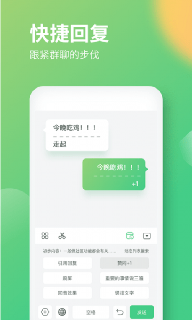 3、一键回复让你能参与到群聊中,不落队,提高群聊的体验,让聊天更简单。