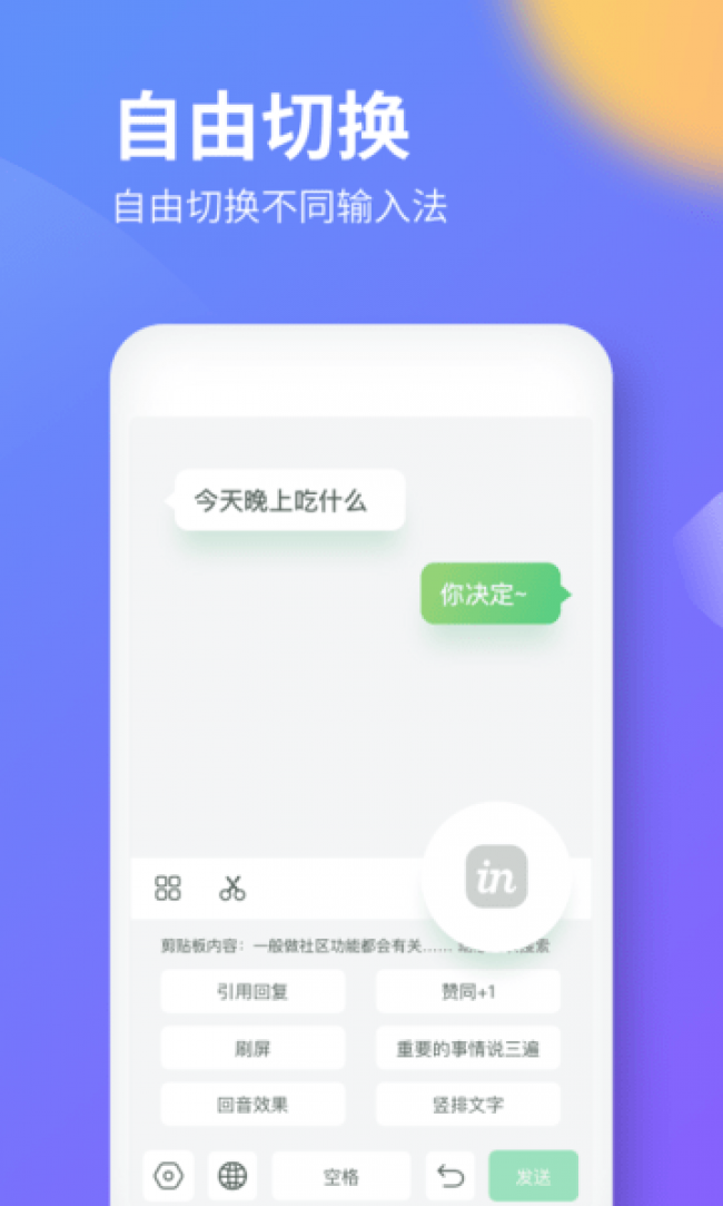 IN输入法app下载是一款非常有趣的聊天输入法,通过它可以有效的提供用户聊天时的效率,其中能够为你提供非常智能的输入键盘,能够让你打字回复的速度能够更加的快速,并且你还能够将自己常用的语言设置成为快捷回复短语,这样就可以更加快捷的回复对方消息,提高聊天的笑了,为你带来更加优质的聊天体验,通过预设的聊天信息,让你可以通过一键发送提高聊天时候的便捷性,同时还能够支持用户自由设置信息发送的时间,可以帮助用户更加准时的发送各种祝福语,有效的增加好友之间的感情,通过智能输入键盘能够有效的提升聊天的乐趣。喜欢的伙伴们快来下载试试吧。