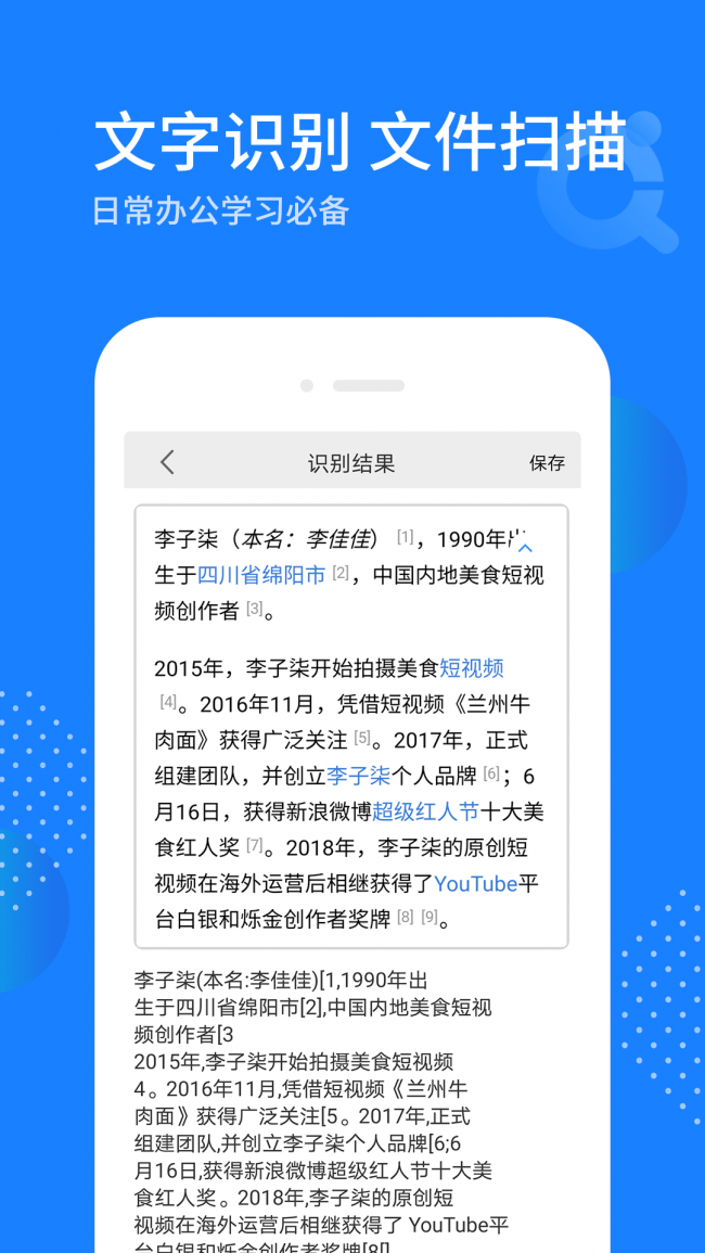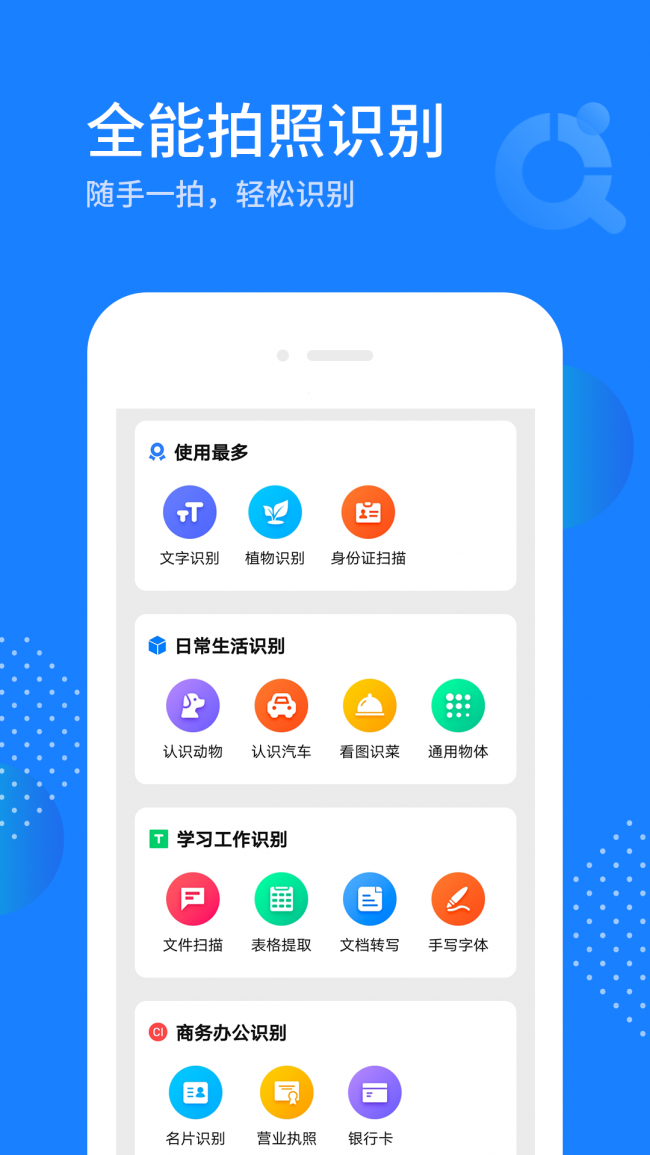 1、拍照识别助手app下载可以快速的在线扫描不同的文件,针对不同的文件可以及时的了解。