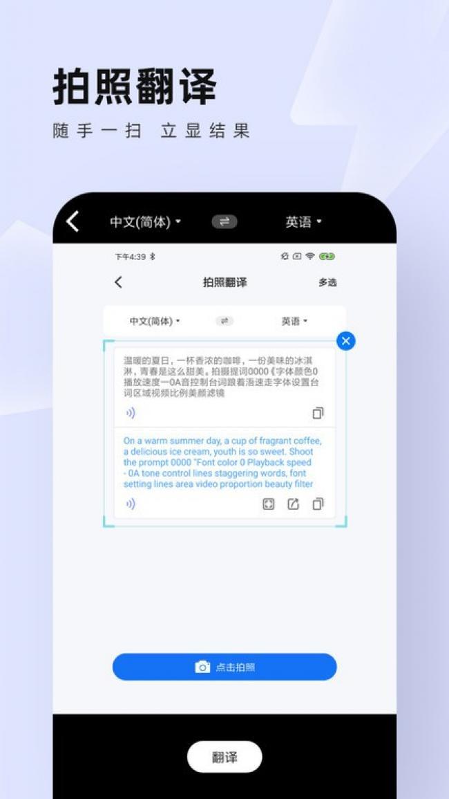 1、获得文本翻译,在线能够快速的使用,满足你的使用需求,非常的方便。