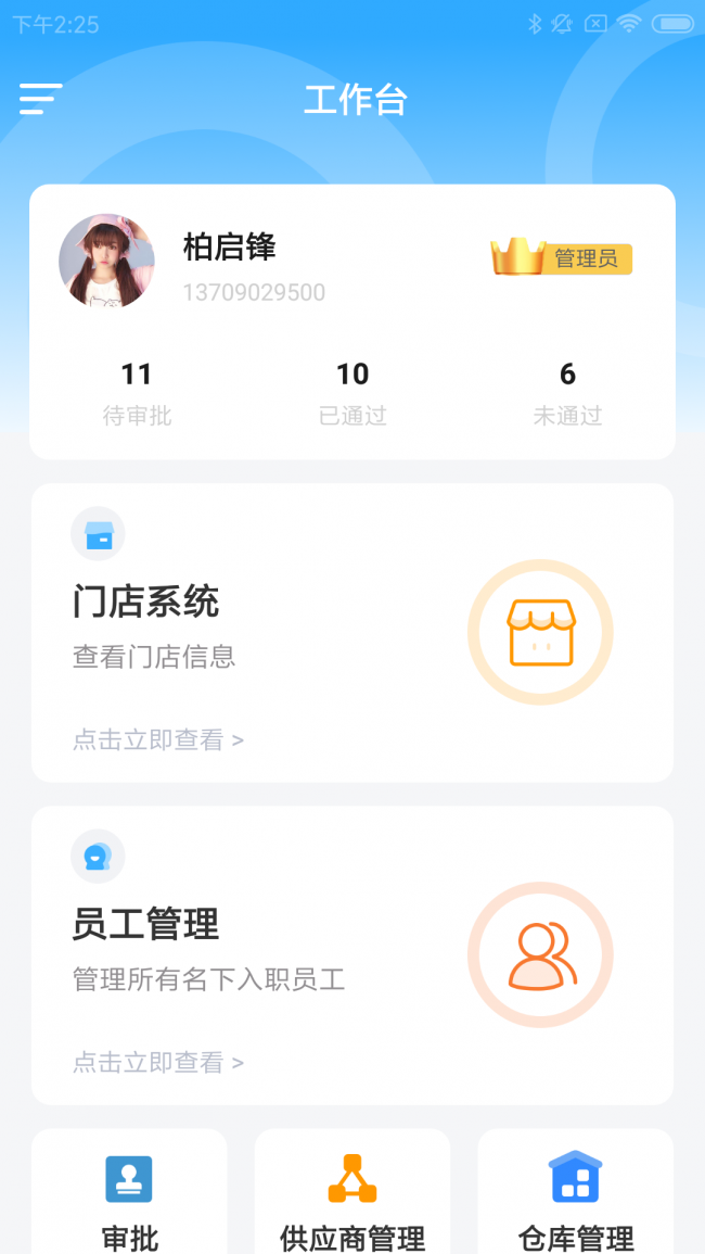 1、软件同时能够满足用户进行员工,门店等丰富的办公操作。