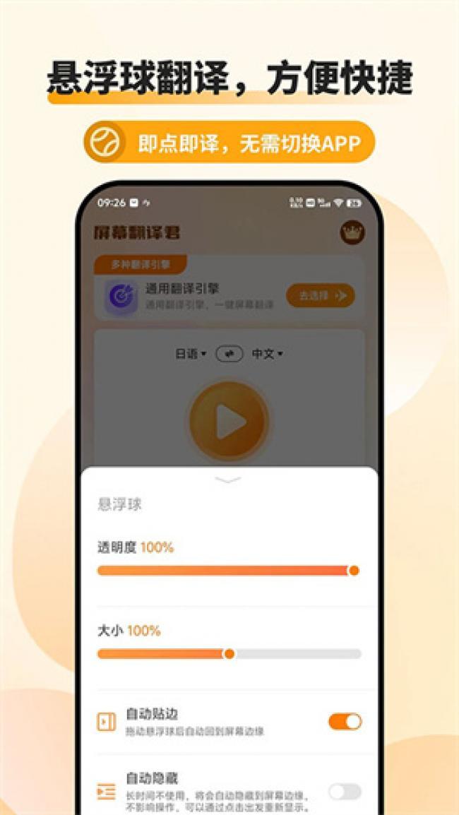 1、屏幕翻译君app下载实时翻译屏幕上的文字,支持中英文等多种文字的在线翻译。