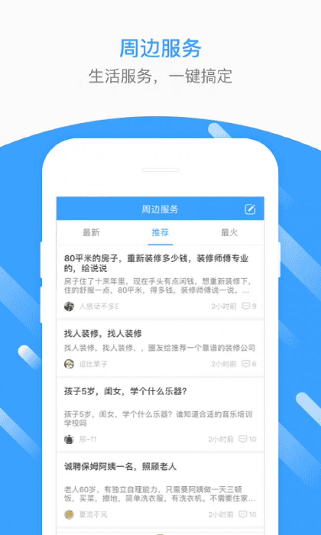 固安生活圈app新版下载是一款独一无二的优质生活服务平台,它皆在为广大固安市民打造安全,便捷,高效的一站式生活服务,您可以在线了解到城市的发展以及最新的资讯信息,新闻播报等等都可以轻松查看,轻松提高生活质量以及市民的幸福指数,足不出户就可以查看,非常的简单好用,无论是本地的吃喝玩乐,还是衣食住行,二手车交易,二手房租赁以及招聘,本地的商圈等等都可以满足,所有的功能都是免费的,板块清晰明了,您可以根据需求来自由查看,独特的互动社区支持在线聊天,分享生活经验,找到志同道合的朋友线下交流,喜欢的伙伴们快来下载试试吧。