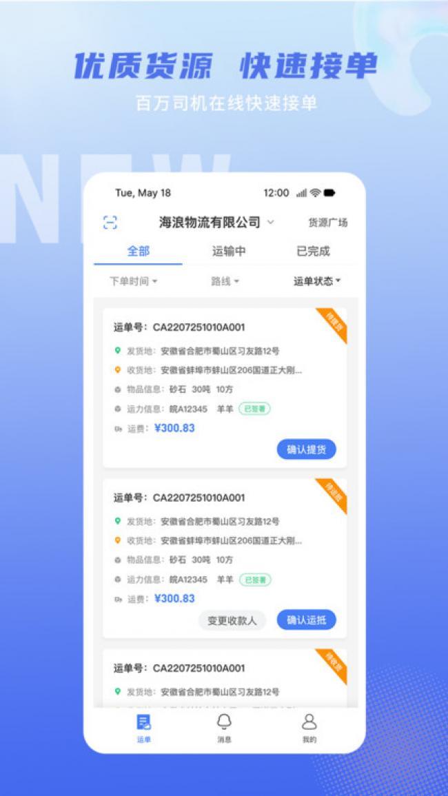 软件提供了在线接单的功能,选择需要的运单就可以在线进行承运。