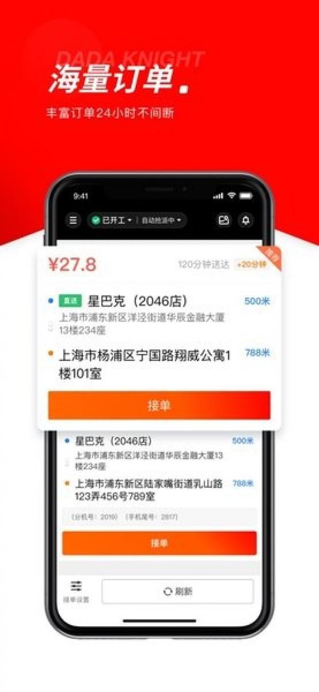 2、24小时订单推送,任何时间都有订单,还有夜间补助。