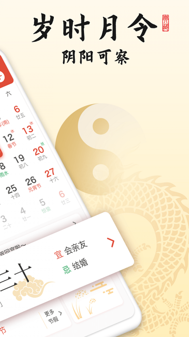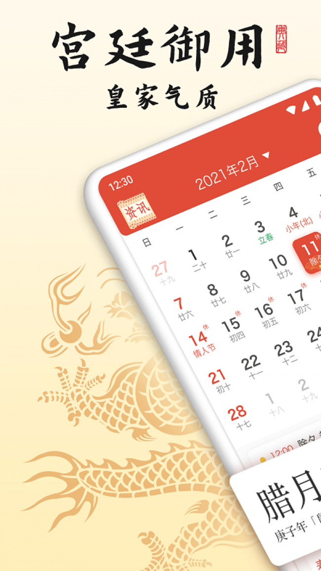 1、御用万年历app下载提供公历信息,在线可以清楚的进行查看,满足用户的使用需求。