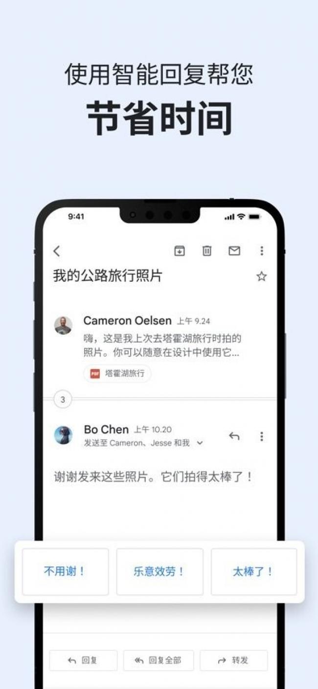 3、使用智能回复建议快速回复电子邮件;