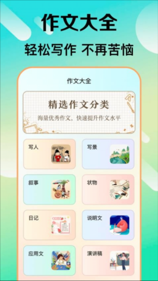 2、可以从作文大全中获取写作灵感学习写作技巧,让你可以轻松写出高分作文。