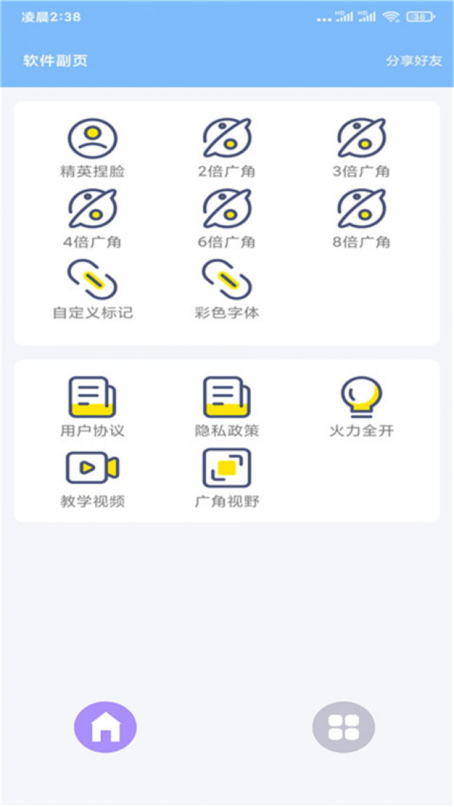 1、软件所提供的广角功能十分的强大,为用户提供了多种大广角,便捷体验强大的功能。