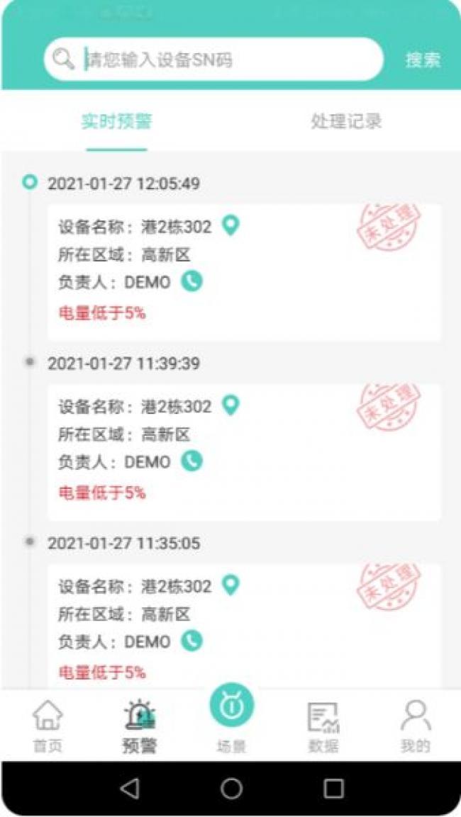 2、搜索查找预警信息,选择并点击预警中心的搜索功能即可输入设备码搜索。