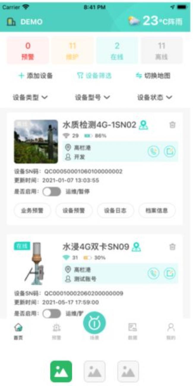 旗云智联app下载是一款非常实用的智能设备管理软件,可以进行公司内部的智能设备管理,其中用户非常丰富的功能,可以同步水质监测、水浸监测以及井盖监测等设备的现在环境状态信息,同时还可以在首页当中实时展示相对应的气象状态内容,包括了空气质量、风速、风向以及湿度等多种天气信息,并且还可以在其中看见丰富的数据内容可统计图,让用户能够全面的了解设备的工作情况,不管是离线、在线还是故障等状态都可以进行实时的了解,同时还可以为你提供实时预警功能,通过它可以在有问题的时候为你提供警报,及时发现问题所在进行维修处理。喜欢的伙伴们快来下载试试吧。