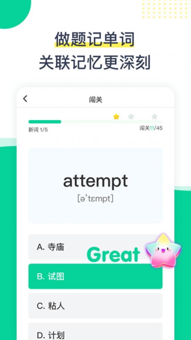 2、采用高效的英语学习方法,可以更好的帮助用户提高英语成绩,非常方便,提供最佳英语教学模式。