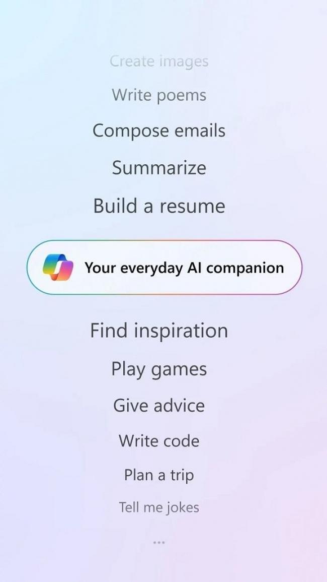 Copilot手机版下载是一款功能强大的智能AI语音软件,能够为你解决任何问题,操作也是特别的简单,你只需要通过对话来进行提问,它就会进行自动全网搜索,为你提供最专业的回答让你得到你想要的答案,不管是工作、学习还是生活中的事项都可以为你轻松进行解答,并且在你觉得无聊的时候也可以找它聊天,为你在生活当中增加许多的乐趣,其中还能够为你提供多种实用的小工具,包括了绘画、翻译以及文本撰写等多种类型,用户可以根据自己的需求来进行选择使用,可以很好的满足大家在各种场景下的使用需求,让你在最短的时间处理最多的事情。喜欢的伙伴们快来下载试试吧。