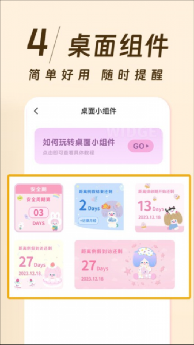 1、姨妈记app下载可以方便地在手机桌面上增加重要的资料,如经期、提醒等。