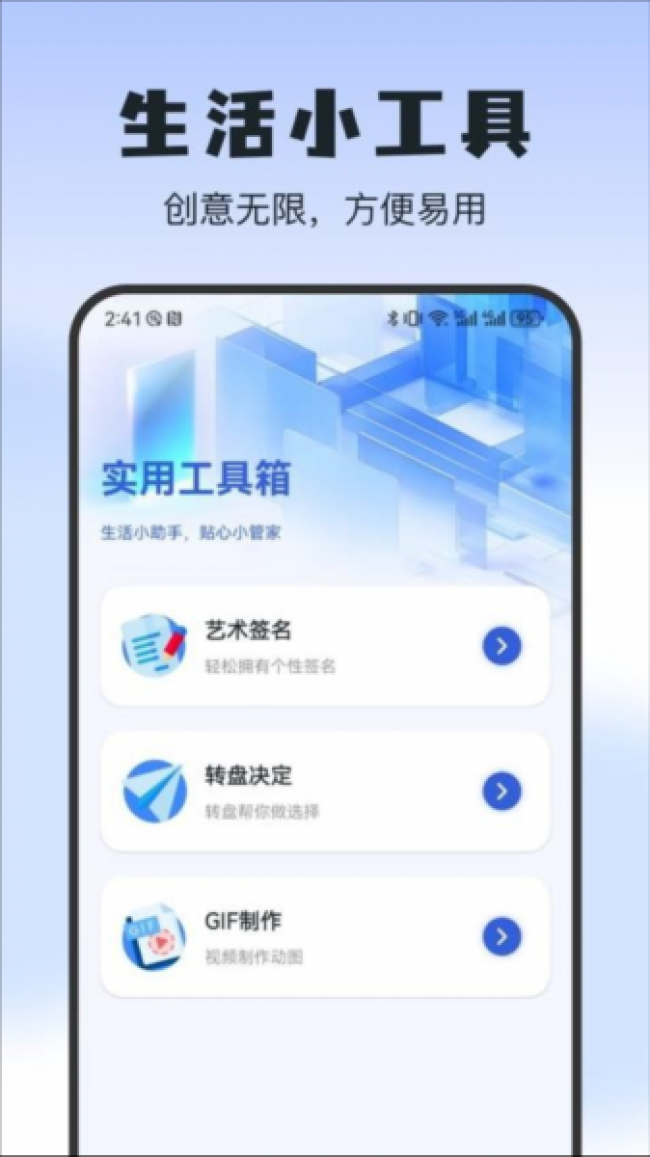 二驴app官方正版下载是一款超级实用的手机工具箱软件,其中能够广大用户提供非常丰富的实用工具,用户只需要在手机上完成安装就可以根据自己的需求来挑选不同的工具进行使用,快速解决相关的问题,方便且跨界,而且其中提供的各种各样功能操作起来十分的方便,随意让用户上手轻松使用它们,不管是学习、工作还是日常生活当中都可以为你提供强大的帮助,并且还为你提供各样的艺术签名设计,让用户可以快速拥有独一无二的专属艺术签名,让用户可以将自己的艺术签名作用于各种场景,它将将多种工具融为一体,满足了用户多样化的需求。喜欢的伙伴们快来下载试试吧。