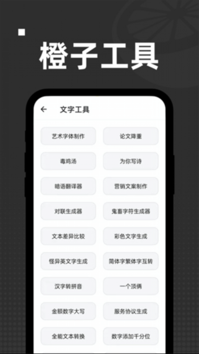 1、橙子工具app下载是大家使用工具必备的神器,在线一键操作。