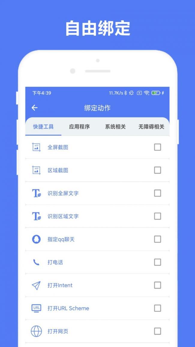 2、用户可以自由选择绑定手势的APP以及各种快捷工具,自由选择想选哪个绑定就选哪个绑定。