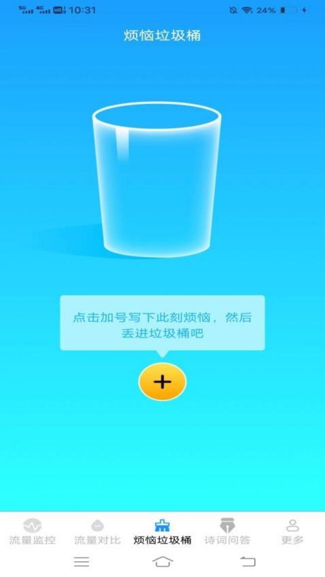 星云流量app下载是一款非常实用的流量监控和管理软件,通过它可以随时对流量进行监测,及时聊天到流量消耗的情况,并且还可以通过图表的形式为用户展示出当前流量的使用情况和剩余流量,方便用户进行流量套餐的设置和管理,帮助用户更好的控制流量使用,避免超支使用流量而导致的额外扣费,还可以自由设置流量的使用限制,一旦到一定额度就会自动进行断网,为你节省了大量的流量,同时除了智能流量管理功能,还为你提供了一个非常优质的烦恼垃圾桶,用户可以随时将各种烦心事进行倾述,有益于快速摆脱掉各种不开心的事情,提升自己的心态。喜欢的伙伴们快来下载试试吧。