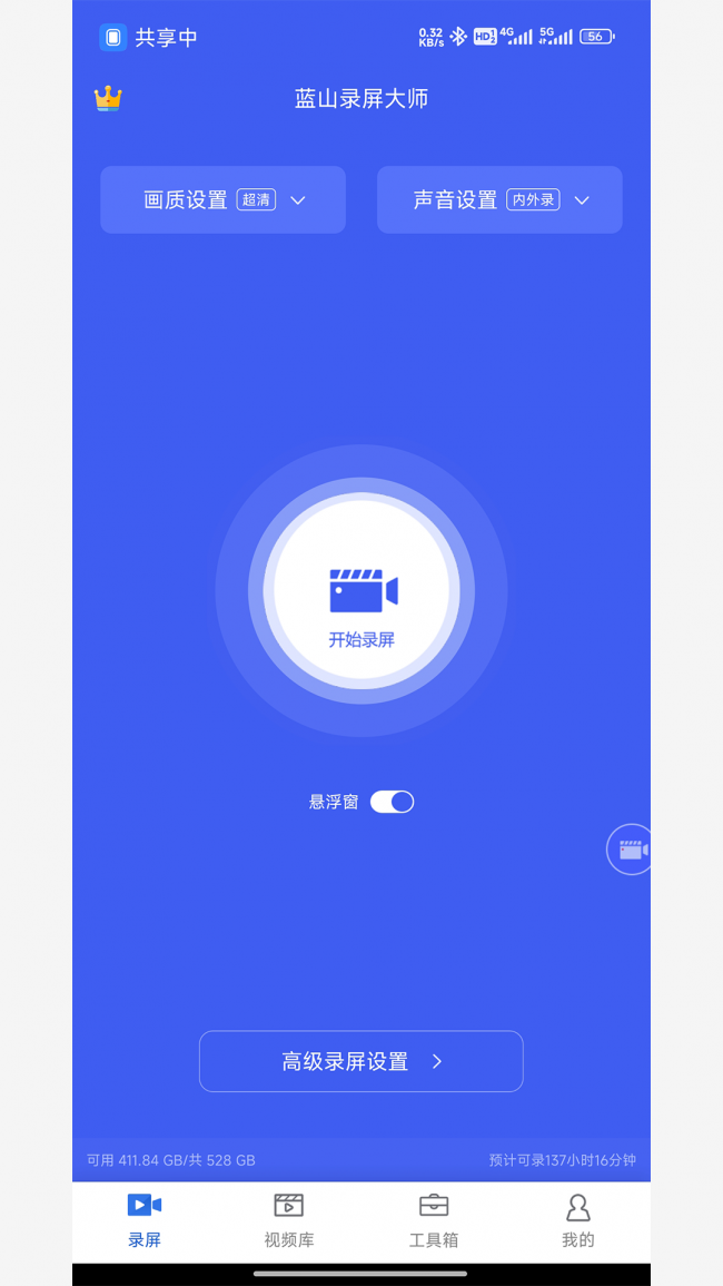 2、可一键开启悬浮窗功能,让你在各个界面都能进行录屏。
