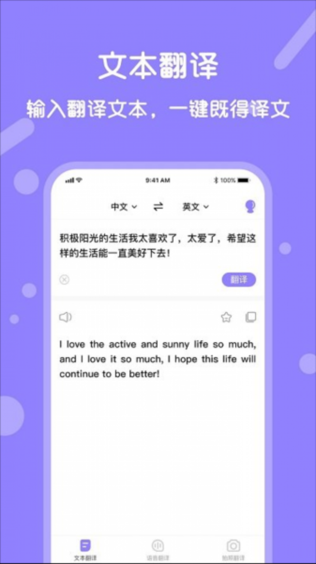 实时翻译app下载安装是一款非常专业的文本翻译软件,能够支持多种语言翻译服务,包括了英语、中文、韩语以及德语等多种类型的语音,为你提供最精准的智能翻译技术,确保了每一次翻译的准确度,并且还可以为你提供多种翻译模式,你可以使用文本翻译,将需要的文本内容导入或者输入进去就可以进行快速翻译,也可以选择拍照翻译,可以精准识别各种图片上文字内容,不管是路牌还是菜单等都可以进行识别,让你出国也不用担心看不懂图片内容,同时还可以进行实时的语音翻译,让你可以和外国人更加流畅的进行沟通交流,非常的方便且实用。喜欢的伙伴们快来下载试试吧。