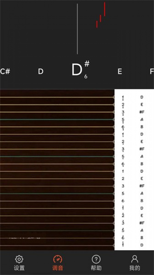 1、拨动琴弦后,软件可迅速识别并显示当前音名(如c、d、g等),便于精准调音。