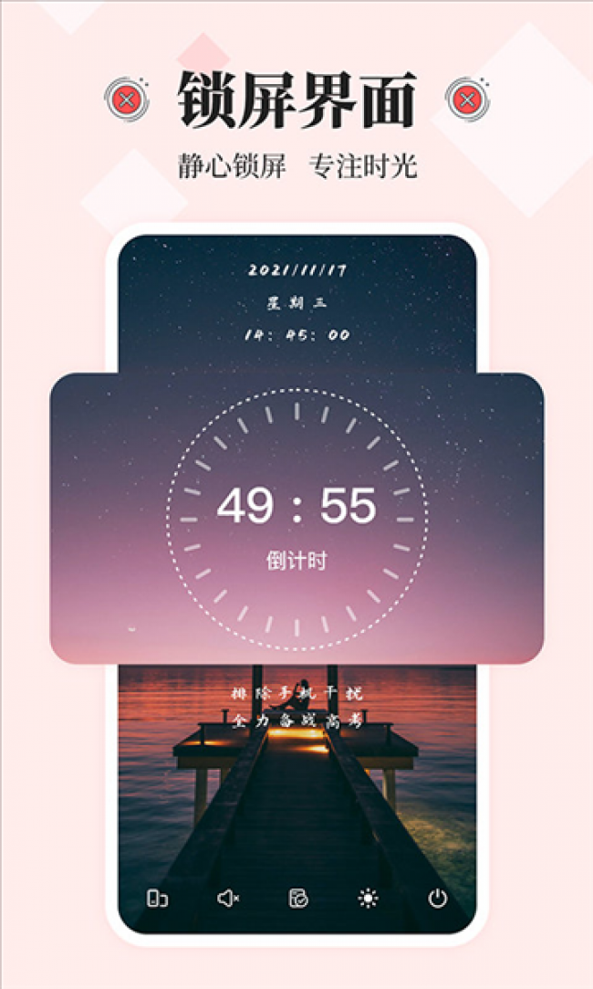 1、一键锁机,快速进入工作/学习状态,摆脱手机干扰不做手机控,不做低头族。