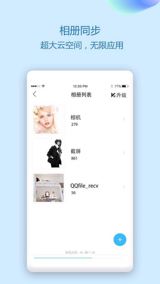 1、超大云空间相册备份功能,保持原图质量上传,支持批量备份手机照片到云端。