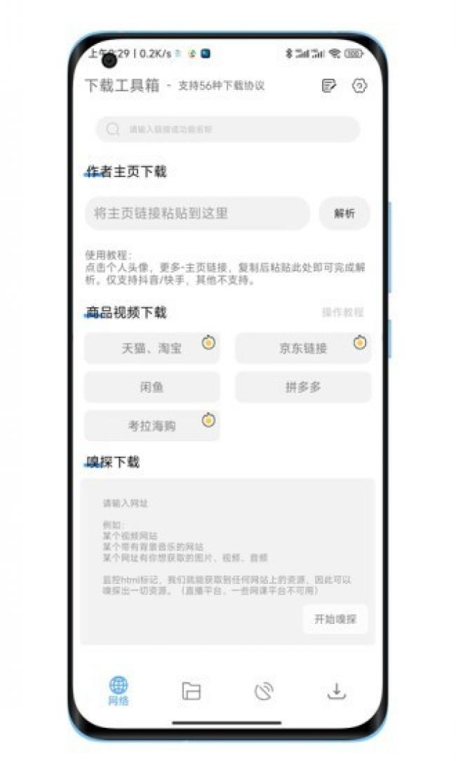 下载工具箱app官方版下载是一款多功能下载工具箱,可以帮助用户快速且便捷的下载各种文件资源,不管是图片、视频还是应用等资源都可以进行下载,满足用户所有的下载需求,还可以为用户提供多种下载方式,用户可以根据自己的需求来进行选择,包括了输入链接、扫描二维码以及浏览器插件等,同时还可以支持多种下载协议,适应于不同类型的下载需求,还可以还可以提供多线程下载,用户可以同时下载多个文件,也不会出现卡顿或者降网速的问题,为用户提供最极速的下载功能,而且全程没有任何的广告弹窗,为你打造最干净的资源下载平台。喜欢的伙伴们快来下载试试吧。