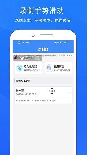 畅玩连点录屏器app下载是一款屏幕点击录制软件,能够为你提供最流畅的屏幕录制和操作连点功能,可以轻松的帮助用户完成屏幕的点击操作任务,不管是游戏挂机、日常签到还是商品抢购等多种场景下都可以进行使用,操作也是非常的简单,哪怕你不会编写脚本也可以快速上手操作,只需要将你需要用到的手势进行录制就可以完成脚本的创建,而且还可以将所有的录制好的脚步进行保存,这样下次打开就可以之间进行使用,非常的方便,而且其中还有悬浮窗功能,通过悬浮窗你可以轻松开启录制和切换功能,为你提供更加便捷的点击脚本操作服务。喜欢的伙伴们快来下载试试吧。