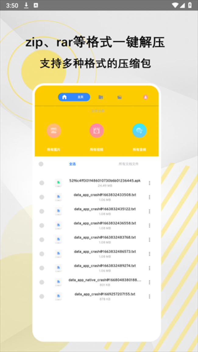winzip解压全能王app下载是一款非常好用且高效的文件解压工具,能够有效的帮助用户将手机上各种类型的压缩文件进行解压操作,用户可以通过它查看文件内容,让用户可以解压到自己需要的文件内容,并且还可以为用户提供文件压缩功能,可以将手机当中的各种大型文件进行压缩,不仅可以方便存放,还手机节省了大量的内存空间,而且还可以自由选择不同的文件压缩格式进行压缩,满足用户任何的压缩需求,还能够根据不同的文件类型智能推荐不同的文件压缩方式,更好的帮助用户进行压缩,其中还有多种不同的使用工具可以使用,全面为你提供文件管理服务。喜欢的伙伴们快来下载试试吧。