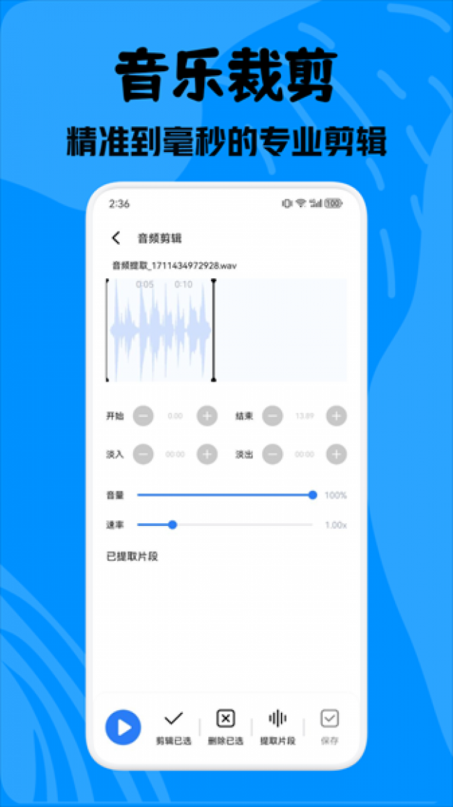 2、可视化的剪辑效果,让你更为直观的去调整音效和参数。