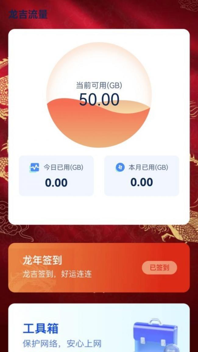 龙吉流量app下载是一款提供专业流量管理的软件,通过它可以帮助用户将手机流量的实用情况实时进行监控,记录下手机流量的消耗数据,让用户清楚所有的流量使用情况,从而更好的控制手机流量的使用有效的降低流量消耗,防止超出额外费用的产生,节省流量费用,让你可以更好的管理手机上的流量,并且其中还能够为你已提供电子贺卡制作功能,可以让用户个性化定制电子贺卡给你的家人朋友们送祝福,借助电子贺卡来传达你的心意,十分的方便,用户还可以在这里学习到更正传统文化知识,让传统文化能够得到更好的弘扬和传承,积极进行文化推广。喜欢的伙伴们快来下载试试吧。