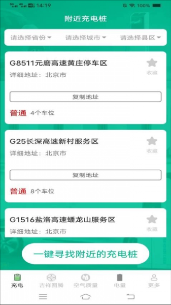 3、用户还可以通过省市区的筛选方式精准查找附近的充电桩。
