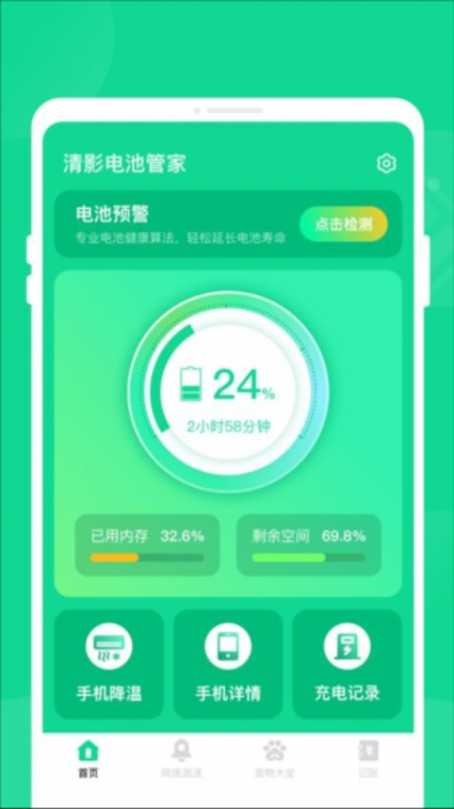 清影电池管家app下载是一款非常好用的电池管理优化的软件,在其中用户可以实时的了解到电池的状态,知晓剩余电池能够使用的时长,方便用户及时对手机进行充电,保障手机电池使用安全,还会将你每一次的充电进行记录下来,通过统计用户可以更好的了解到充电的频率,可以进行控制减少对电池的消耗,还可以为你提供手机降温功能,一旦出现手机发烫的情况用户可以通过一键降温快速的帮助手机进行降温处理,避免了因为温度过高而对手机电池造成一些损伤,还可以为你提供电池优化方案,能够有效的提升电池使用寿命,让电池变得更加耐用。喜欢的伙伴们快来下载试试吧。