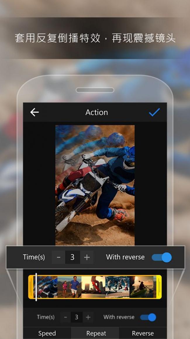 3、完美重现精彩画面 – 套用特效,弹性表现画面快/慢动作,或重复倒播特定片段,制造趣味效果。