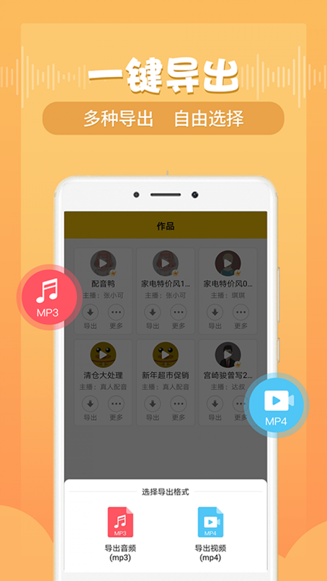 3、所有音频皆可一键导出MP3至手机、U盘离线播放,多平台分享至好友,方便快捷。