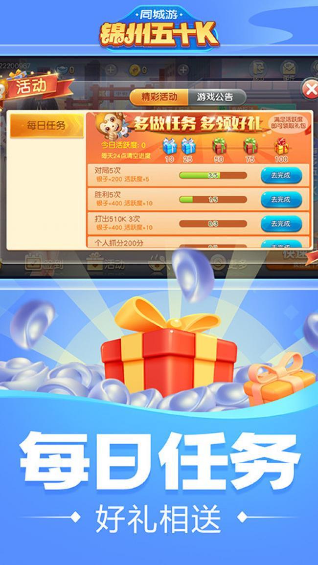 1、本地化玩法:同城游锦州五十k下载专为锦州地区设计的规则和牌型。