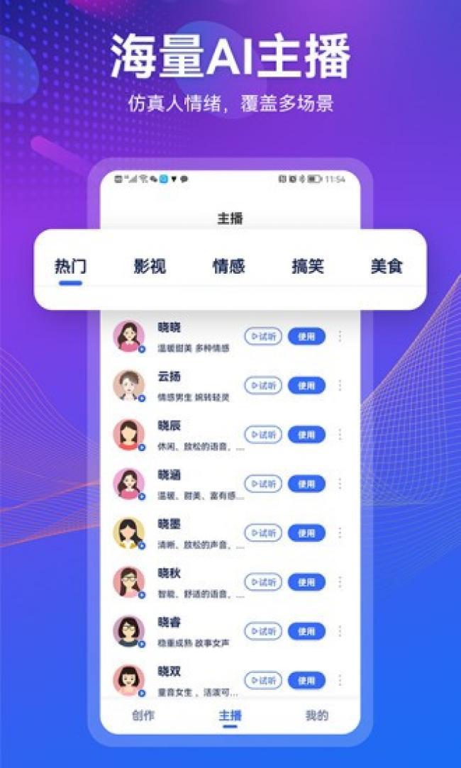 3、只需要输入文字就可以快速选择自己想要的主播,轻松打造自己想要的配音文件。