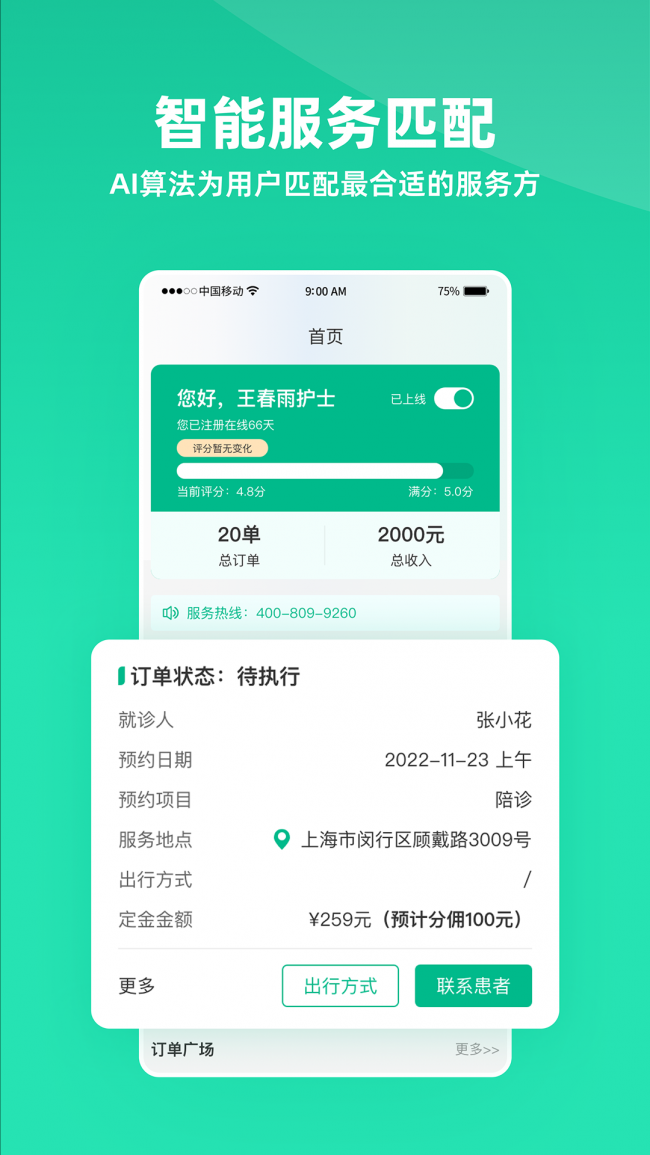 2、通过智能算法,能够结合护士的接单需求以及实时位置精准匹配附近订单资源。