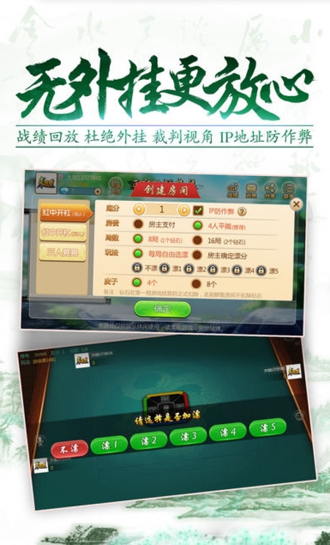 再也不用苦于配桌,全民手机时代,你可以再手机上随时随地和亲朋好友搓麻将,是传统麻将馆的有力补充。和亲朋好友一起开房,决一高下吧!