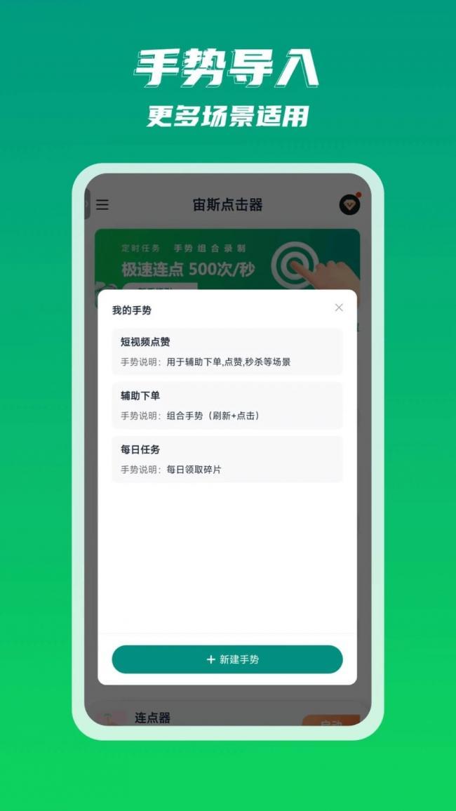 1、宙斯点击器app官方下载可以通过手势组合的方式进行操作,为用户带来更多便利。