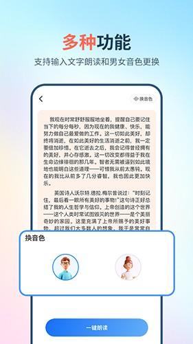 拍照朗读神器app下载是一款功能强大的智能朗读软件,专门为需要解放自己双手合双眼的用户而设计,通过简单的拍照或者截屏操作,就可以将各种类型的文本内容转换为清晰而流畅的语音文件,再也需要用手或者眼睛也可以了解到其中的内容,无论是纸质书籍、电子文档还是网页内容,都可以轻松实现语音播报,并且还可以支持多国语言识别和翻译功能,内置了智能语音系统,可以自主调节语速和音调,让阅读体验更加个性化,非常适合上班族、学生党以及视力不佳的用户使用,帮助他们可以在通勤、学习或者休息的时候享受到便捷的听读服务。喜欢的伙伴们快来下载试试吧。
