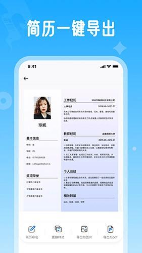 2、软件中含有海量的简历模板,使其轻松填写个人基本信息,并导出为PDF文件格式进行保存。