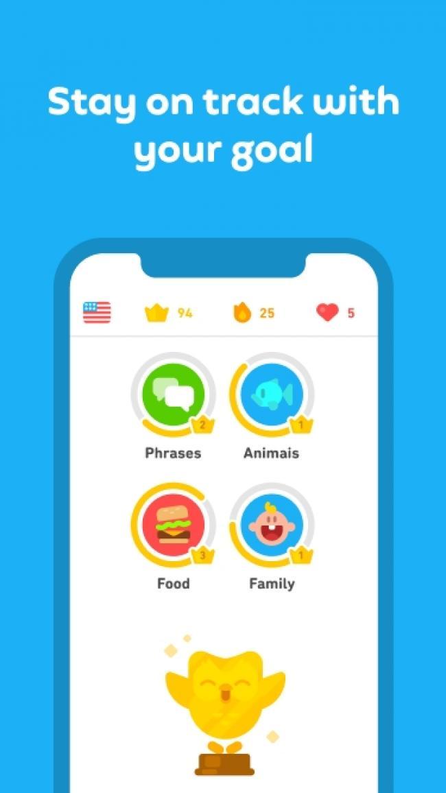 多邻国课程高效有趣,学习34小时的多邻国课程就相当于大学1个学期的语言课程学习。