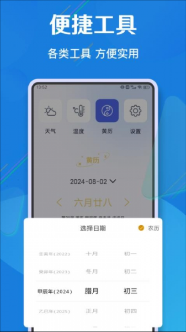 2、日历与黄历查询:不仅可以查看农历与阳历,还能查询每日的黄历信息,让您掌握运势。