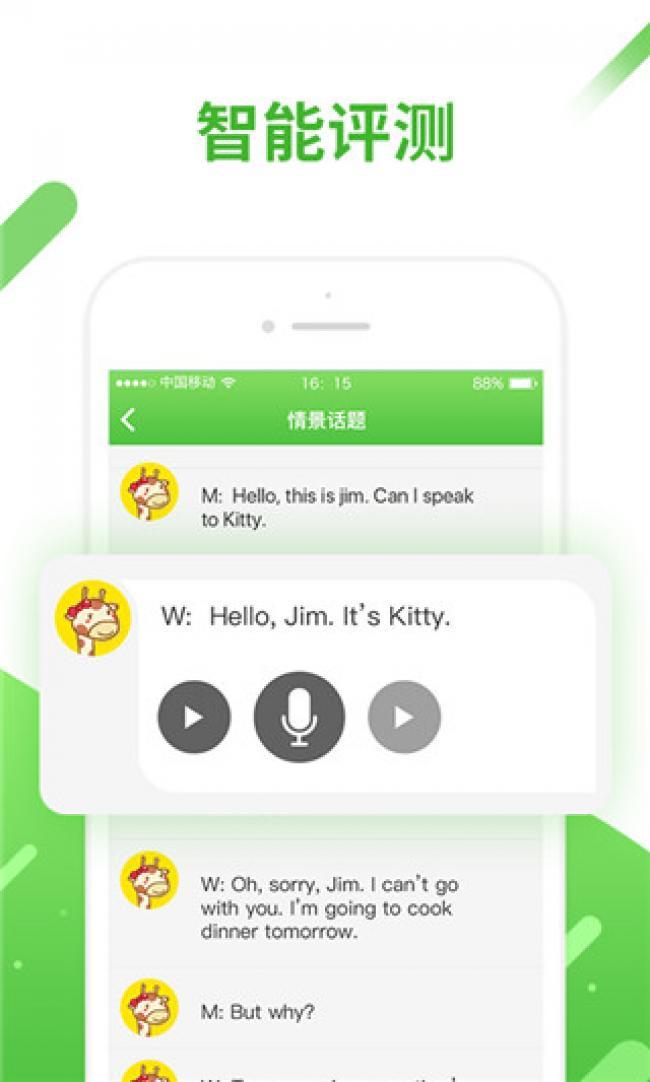 标准发音演示、AI智能发音纠正、听说模拟训练、智能评估。