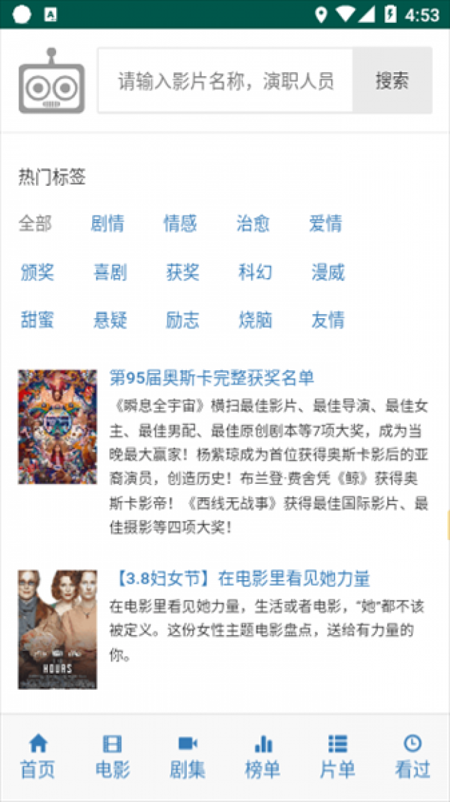 2、内置强大的搜索引擎,支持关键词搜索,帮助用户快速找到感兴趣的电影。